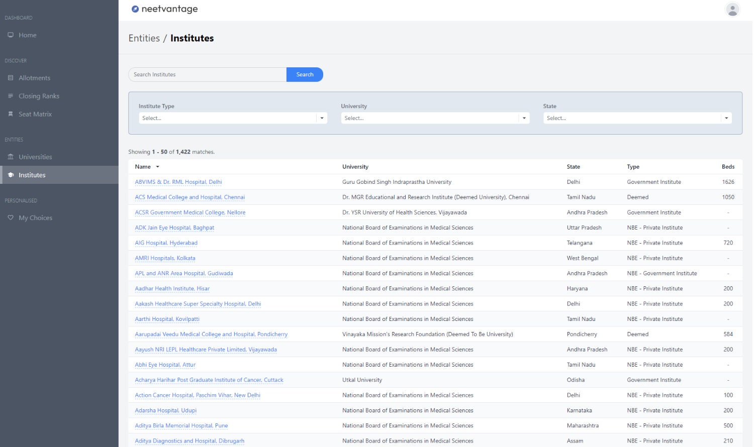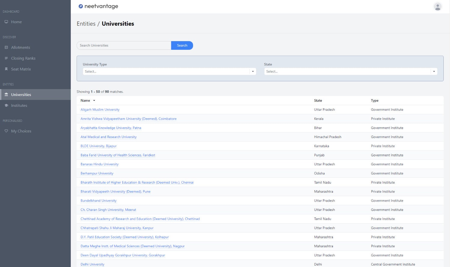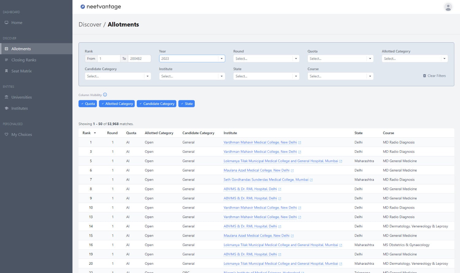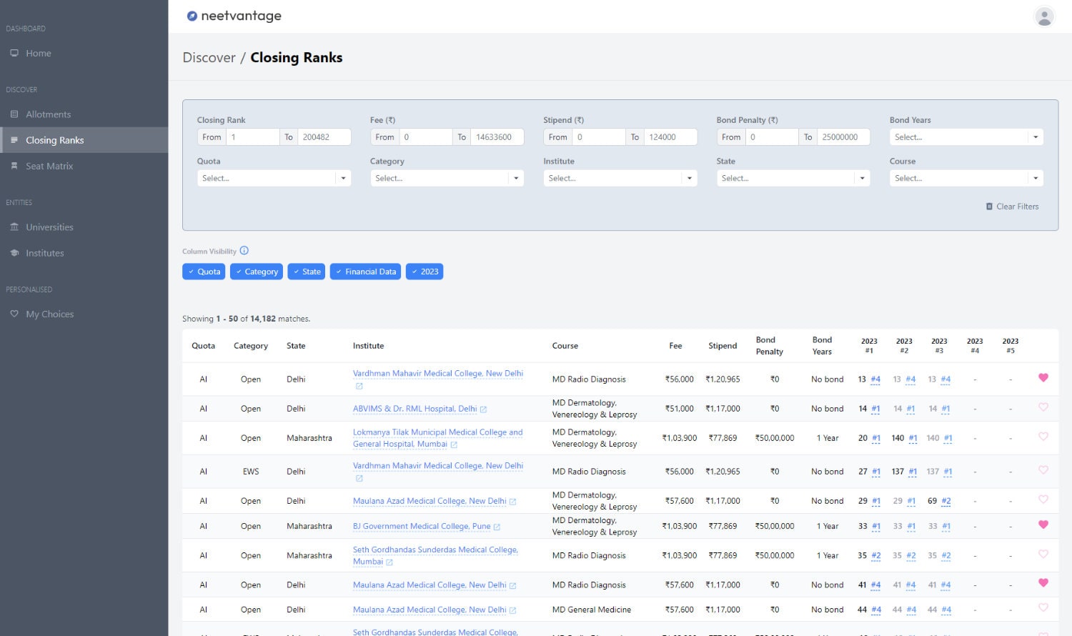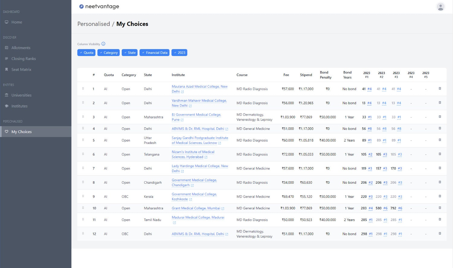 Swipe through our gallery to see how each feature of our intuitive dashboard can simplify your NEET PG Counselling journey.
